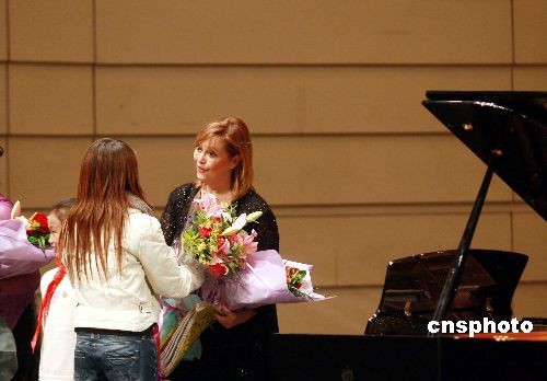 10月30日,为纪念第四个世界“临终关怀和舒缓治疗日”,中国生命关怀协会在北京举办《心的呼唤-爱的乐章》慈善义演音乐会。法国著名女钢琴家卡洛琳娜.姆哈公主也参加了慈善义演活动。图为观众在给卡洛琳娜.姆哈公主送花。中新社发 郑雄增 摄