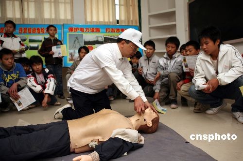11月14日,四川省广安市武胜县烈面镇高原小学的留守学生在学习安全应急知识。当日,四川省广安市电力局的志愿者专程前往地处边远山区的武胜县烈面镇高原小学,为留守学生传授安全用电及电力事故应急知识。中新社发 邱海鹰 摄