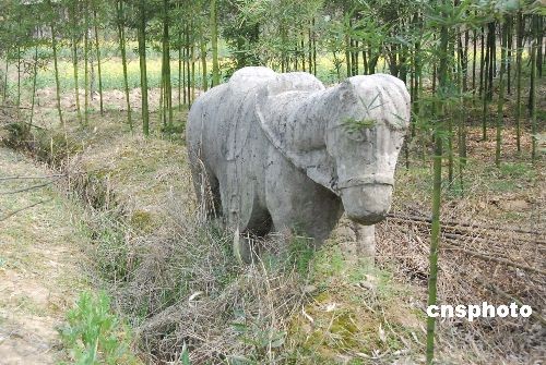 日前,浙江省杭州市余杭区进行了第三次全国文物普查。在该区瓶窑镇普查人员发现,在一农户家的菜园前立有一对明代石马,就在石马边上的竹林还一座赑屃(读bìxì),赑屃所背的石碑虽以不知所踪。据介绍,这三件石雕的出现,足以显示当地可能存有一座规格较高的墓葬,而从墓的地理位置看,极有可能是明兵部尚书柴车墓。中新社发 张洁 摄