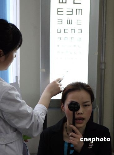 四月八日,中国内地首个免费为汶川灾区考入北京的大学生实施近视眼手术大型公益活动,在二炮总医院正式启动。此次活动面向汶川灾区在二零零八年九月考入北京大专以上全日制大学且患有近视的大学生。中新社发 任海霞 摄
