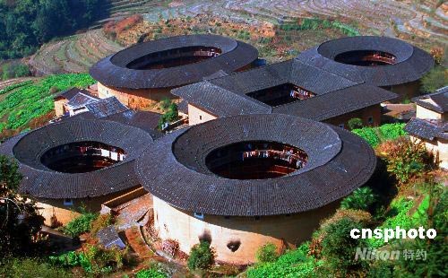 当地时间7月6日下午,在加拿大魁北克城举行的联合国教科文组织第32届世界遗产大会上,独具特色的大型民居建筑中国“福建土楼”被正式列入《世界遗产名录》。“福建土楼”由永定、南靖、华安的“六群四楼”共46座土楼组成。专家指出,“福建土楼”造型独特,规模宏大,结构奇巧。土楼文化根植于东方血缘伦理关系,是聚族而居传统文化的历史见证,体现了世界上独一无二的大型生土夯筑的建筑艺术成就,具有“普遍而杰出的价值”。中新社发 丁卫 摄