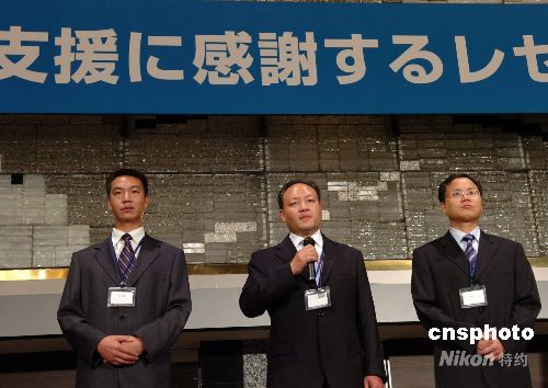 7月29日傍晚,中国驻日使馆在东京举行招待会,感谢日本各界对中国汶川大地震的热情援助。包括日本众院议长河野洋平、参院议长江田五月、中国驻日大使崔天凯在内的日中两国500余人出席。正在日本学习震后重建成功经验的中国地震灾区官员,代表震区人民向日本政府与人民表达感激之情。图为汶川县县长廖敏(中)在向来宾介绍汶川的震后重建情况。中新社发 朱沿华 摄