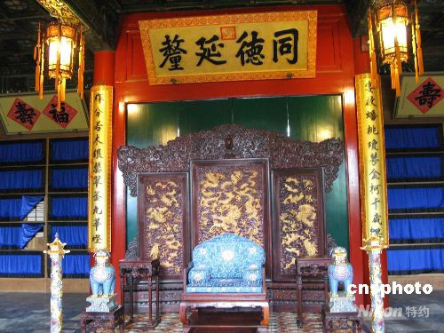 在历时三十一个月、投资两亿元修缮后,北京恭王府府邸将于八月二十日起正式迎客。据悉,该座有二百三十二年历史、北京现存规模最大最完整的王府首次对公众开放。图为修缮后的和珅书房,内部摆设按当年原样仿制,书柜则是当年的原物。 中新社发 杜燕 摄