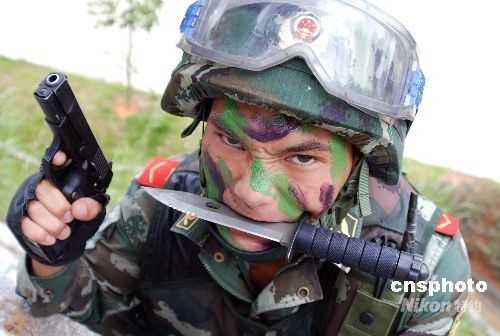 担负机动任务的武警福建总队直属支队特勤中队官兵连日来在生疏复杂地域进行多样化任务演练,磨砺处置突发事件和反恐的精兵。中新社发 曾朝群 摄