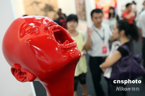 9月10日,2008上海艺术博览会开幕。本届艺博会吸引了来自中国、美国、法国等20个国家的140余家海内外优秀画廊前来参展。中新社发 汤彦俊 摄
