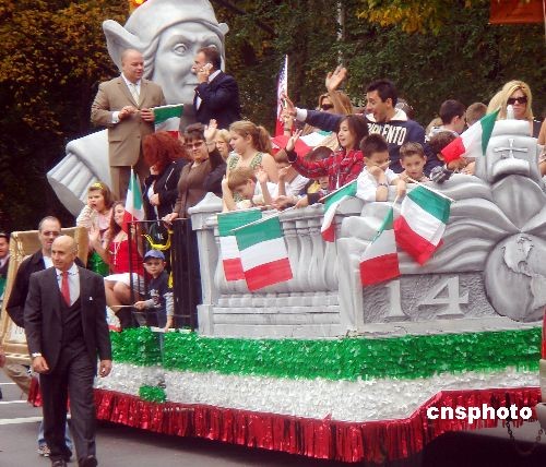 图:纽约举行花车巡游欢庆哥伦布日