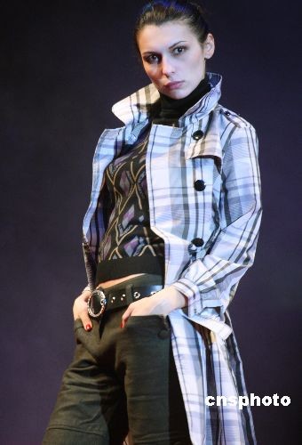 10月16日晚,2008北京大红门国际服装节开幕晚会在北京举行,晚会汇聚中外模特,展示欧、美、亚时装新款作品,来自加拿大THE KILL KENNYS乐队、非洲AFRIACANRYTHM乐团以及中国内地歌手等参加演出。图为2008大红门国际服装节晚会上模特展示欧洲设计师品牌时装作品。中新社发 钱兴强 摄