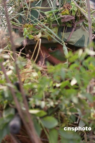10月19日,济南军区侦察兵进行比武考核,侦察队员们攀山越岭行军50公里,主要完成了横越山涧、战场救护、破袭战斗三项课目考核,优秀率90%。动态考核结束后将进行总结表彰,评出军区侦察兵精武标兵。侦察队员负战斗装具60米山涧。最好成绩38秒。中新社发 崔成俊 摄