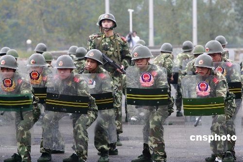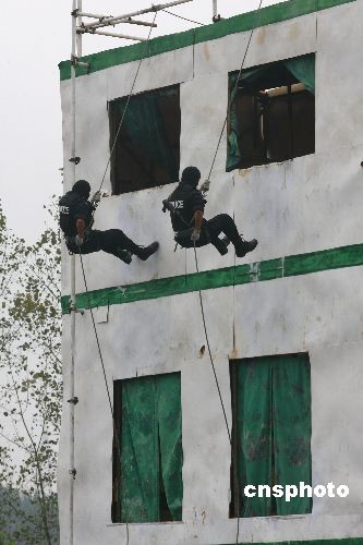 10月21日上午,遂宁市公安特警在进行反劫持人质演习。当天,四川遂宁市公安大练兵暨反恐演习举行。中新社发 钟 敏 摄