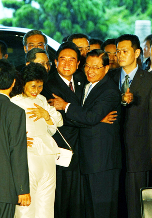 图:江丙坤与陈云林热情拥抱