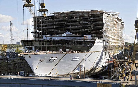据英国《每日邮报》报道,邮轮总是一次又一次超乎想象地刷新世界记录,如今皇家加勒比海国际游轮公司目前正在芬兰造船厂建造世界上最奢华的超级游轮――"海洋绿洲号"(Oasis of the Seas)。这些惊人的图片正展示了此游轮最宏伟的创新之处。