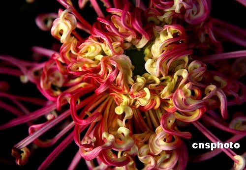 在11月上旬的河南省开封市第二十六届菊花节上,盆盆竞相怒放,朵朵争奇斗艳。 菊花花会是开封市政府主办的融观花赏菊和展示宋都民俗文化为一体的盛大旅游文化活动,每到金秋时节,古城公园景点、大街小巷到处都是菊的世界,花的海洋。期间,龙亭、铁塔、大相国寺、包公祠、禹王台五大展区展花40余万盆,200多个品种,菊花造型千姿百态,令人目不暇接。中新社发 宋吉河 摄
