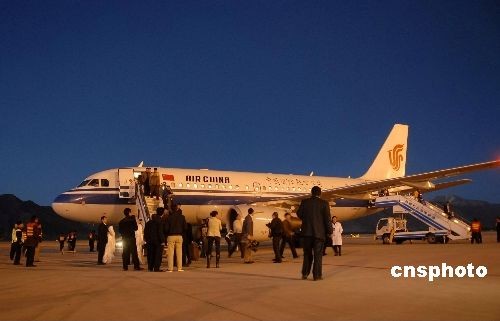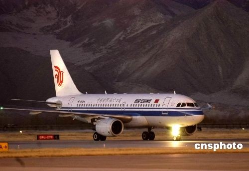 11月12日19时22分,国航成都至拉萨的夜航CA4406航班平稳地降落在拉萨贡嘎机场,并于当日21时42分将拉萨至成都的102名旅客顺利送达成都双流机场,这标志着拉萨夜航航班首航成功,此举也结束了43年来拉萨贡嘎机场无夜航的历史。 中新社发 龙昊 摄