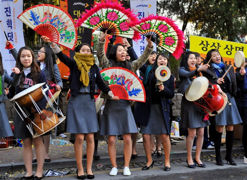 11月13日,成千上万的韩国高中生参加了大学入学考试。在韩国,名校毕业生在就业和婚姻上都有更多选择,因此一年一度的韩国高考被媒体称为决定命运的大型活动。父母寺庙祈愿、学弟学妹加油等屡见不鲜。