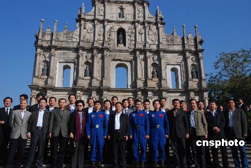正在澳门访问的神舟七号载人航天代表团十二月九日上午参观了著名景点大三巴牌坊。
