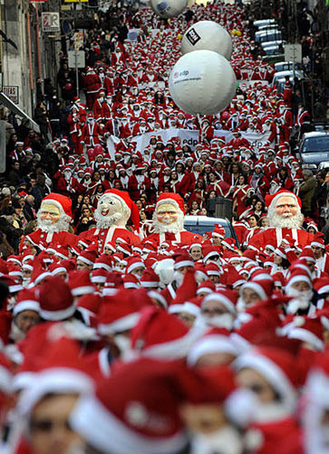 12月14日,打扮成圣诞老人模样的人们参加在葡萄牙城市波尔图举行的一年一度的圣诞老人巡游。参加今年波尔图圣诞老人巡游的人数达14000多,参加者意欲创造新的吉尼斯世界纪录。