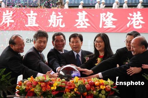 12月15日上午,台湾行政当局负责人刘兆玄率同“陆委会主委”赖幸媛、海基会副董事长高孔廉、“交通部次长”游芳来与台湾知名航商负责人共同出席“两岸海运直航基隆港首航仪式”。