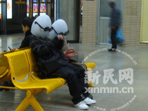 据网友提供的照片显示,所谓“蛋壳人”,就是头戴一顶类似蛋壳的头盔,“蛋壳”上还戴着一副黑框眼镜。照片中,从衣着上看,头顶“蛋壳”的至少有4人,2男2女。女人一副OL打扮,男人都是休闲装束,他们所出现的地方为新世界、南京西路、来福士以及徐家汇。其中一对男女还手挽着出现在徐家汇美罗城对面以及地铁站头。