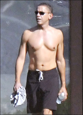 据英国媒体报道,即将成为美国首位黑人总统的奥巴马近日携妻子米歇尔、两个女儿前往夏威夷度假,他脱掉了T-shirt,向外界展示了他完美的胸部和腹部肌肉。
