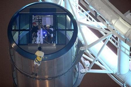 该摩天轮高165米,相当于42层楼高,转一圈约半小时,每个座舱可载28人。这次已是自年初开幕以来第4次故障,最近一次于本月4日,摩天轮停转5小时,70人在炎热天气下半天吊。