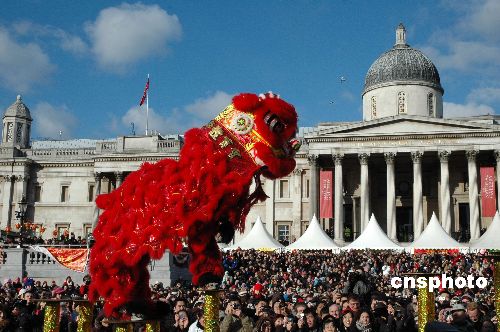当地时间2月1日,英国伦敦盛大的中国新年庆典在市中心特拉法加广场开幕,约有35万人参加了当天的活动。中新社发 程嘉扬 摄