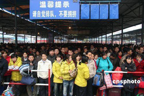 湖南衡阳火车站是湘南地区节后旅客最大的集散地,2009年1月31日以来,日发送旅客5.5万余人次,创历史新高。连日来,衡阳铁路公安处全警出动,分布在衡阳火车站安检口、售票厅、站台等岗位,组织旅客有序进站,确保广大旅客群众出行安全。中新社发 刘爱成 摄