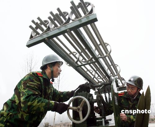 2月3日下午,安徽淮北人工影响天气作业基地的工作人员移动火箭发射架进入作业状态。当日,淮北气象台举行名为“闪电”人工催雨演练,以备战可能形成催雨作业天气条件的人工降雨。目前,安徽省遭遇特大旱情,安徽省气象台2月1日10时发布干旱红色预警,预计未来一周淮河以北地区有60%以上农作物受旱。