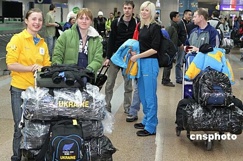 二月十二日,参加大学生冬季运动会的第一个代表团——乌克兰代表团抵达北京。据了解,有95%的各国运动员、教练员以及观赛旅客将从北京入境,然后转机到哈尔滨,北京首都国际机场成为大冬会人员、物资最主要的进出境通关口岸。北京海关启动奥运安保预案和奥运便捷通关措施,设立大冬会专用通道,适当简化通关手续,加速通关。中新社发 雷虹 摄