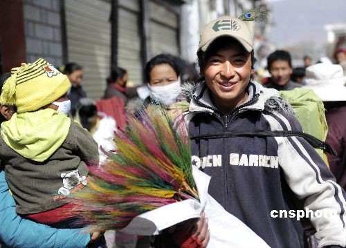 2月23日,藏历新年前夕,西藏拉萨小昭寺路年货集市上,藏族民众欢欢喜喜置办年货。