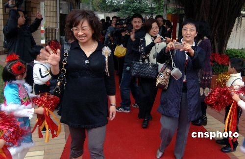 台湾幼教代表团一受到小朋友及老师的热情欢迎。中新社发 刘可耕 摄