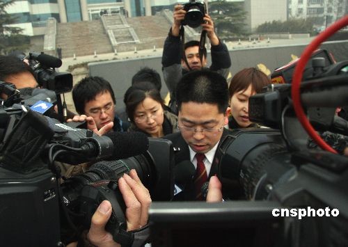 3月4日,三鹿集团部分破产资产在河北石家庄市中级法院公开拍卖。石家庄中级法院新闻发言人王伟向媒体宣布,三元集团与三元股份全资子公司河北三元以6.165亿元人民币拍得三鹿资产。图为新闻发布现场。中新社发 翟羽佳 摄