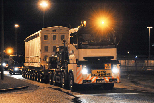 据法新社报道,3月4日,运送核废料的卡车抵达法国西部瑟堡港附近。法国核能技术公司巨头阿海珐集团发言人在3月1日表示,该集团准备将一批购自日本并经再加工的核废料运回日本。环境保护人士称这是历史上规模最大的放射性物质钚装运,因途中可能遭遇恐怖袭击而增加核扩散的风险。