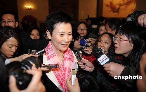 3月3日,全国政协十一届二次会议在北京人民大会堂开幕。图为全国政协委员李小琳在人民大会堂接受各路媒体采访。中新社发 孙洪杰 摄