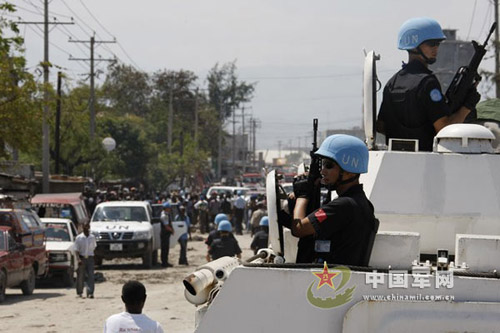 近日,300余名海地民众在太阳城国家一号公路举行游行示威,并设置路障,致使交通堵塞。中国第七支驻海地维和警察防暴队根据联海团指令,迅速赶往现场进行处置,成功化解了矛盾,及时恢复了交通。