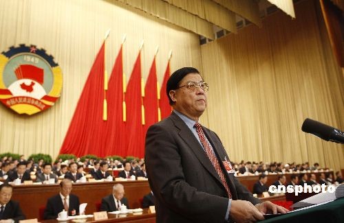 图:许善达委员在政协第二次全体会议上发言——中新网