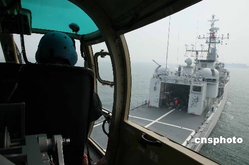 近日,黄海某海域,海军某舰载机部队新型舰载直升机正在与水面舰艇互保互训,进行舰机协同训练。连日来,海军某舰载机部队积极适应多样化军事任务要求,以高度的政治责任感和紧迫感抓训练、促安全。他们严格按照新一代军事训练大纲要求、内容和标准组织训练,改进训练方法,完善训练内容,探讨提高舰机协同训练效益新途径,不断提升部队海空协同作战能力。
