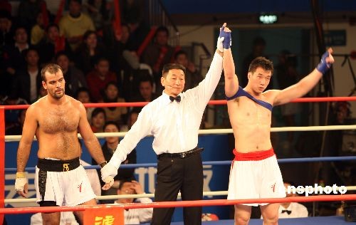 3月9日晚,第四届国际武术搏击王争霸赛在重庆点燃战火,来自中国、俄罗斯、美国、伊朗、法国、巴西等国的12名选手将在6天时间里捉对厮杀,争夺最后的王者宝座。据悉,今年的比赛赛制取消了级别限制,每场比赛都采用无差别级较量,同时还实行了分组对阵和双败淘汰的赛制。该项赛事此前已成功举办过三届,诞生了穆斯里穆(2006年)、黄磊(2007年)、张庆军(2008年)3位“王中王”。
