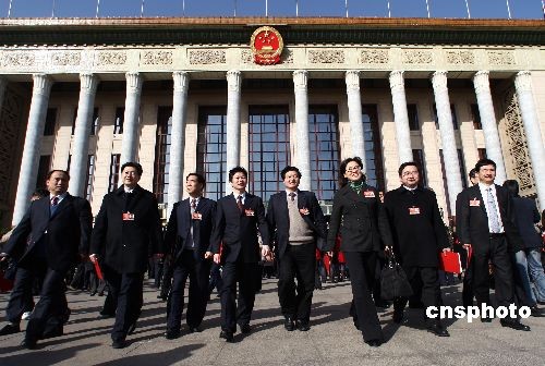 3月13日,第十一届全国人民代表大会第二次会议在人民大会堂闭幕,代表们满面春风地步出人民大会堂。中新社发 杜洋 摄