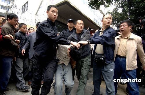三月二十三日上午,福州警方在福州市区湖东路诚信典当行抓获劫持三名人质的嫌犯,成功解救三名人质。这起劫持人质事件是该典当行的一名保安,他劫持了该典当行的三名工作人员作为人质,具体原因还在调查之中。中新社发 王东明 摄