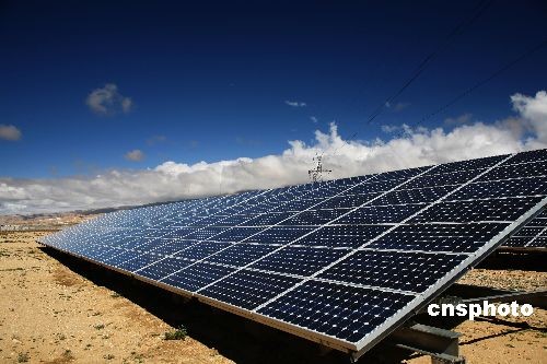 3月26日消息,随着世界光伏产业的迅速发展,在空旷地区建设大规模光伏电站越来越受到人们的瞩目。羊八井光伏电站就是我国第一座与高压电网并联运行的光伏电站,发出的电能并入藏中电网,供给拉萨市及周边地区使用。经过一年的实际运行计量表明该电站年发电量为18.3万度左右,可以满足约150户居民的日常用电需求,每年可以节约75吨标准煤,减排二氧化碳275吨。羊八井100Kwp光伏示范电站在国内首次采用直接并入10kv高压电网的技术方案,在不影响原有电网的结构和安全稳定的情况下,为进一步在西藏地区推广太阳能并网发电做出了示范。中新社发 扎西朗杰 摄