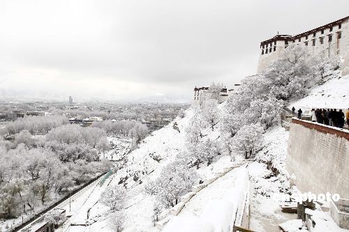 3月30日,拉萨普降大雪。雪后的拉萨城以及布达拉宫美不胜收。中新社发 盛佳鹏 摄