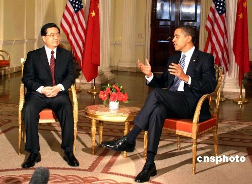 图:胡锦涛在伦敦首次会见奥巴马——中新网