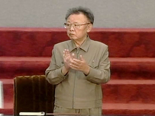中新网4月10日电 朝鲜第12届最高人民会议第一次会议9日在平壤举行,再次推举朝鲜最高领导人金正日为国防委员会委员长。朝鲜最高领导人金正日出席了当天在平壤开幕的朝鲜第12届最高人民会议第一次会议。