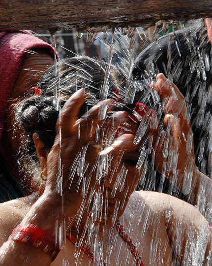 图:尼泊尔印度教信徒集体沐浴庆祝传统节日(3)