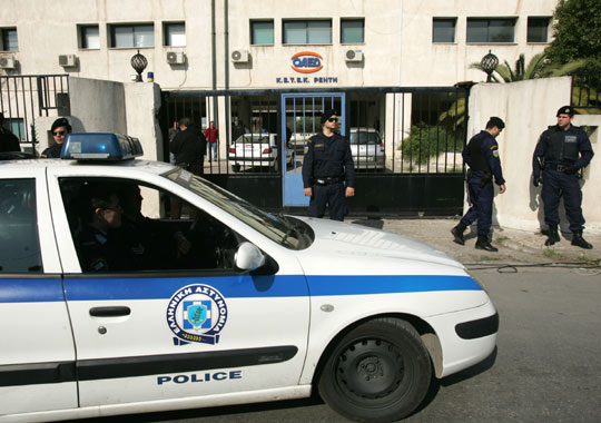 4月10日,希腊首都雅典的一所职业学校发生枪击案:一名19岁学生在学校内开枪,打伤一名18岁学生,另有两名路人受伤。随后凶手朝自己头部开枪后被送到医院,不治身亡。 图为当地警方在事故发生后封锁了该学校。