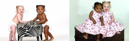 英国一位混血妈妈凯蕾·霍奇森于2005年生下一对双胞胎,一个是黑皮肤,另一个是白皮肤。据统计,这种截然不同的双胞胎出现的几率只有百万分之一,非常罕见。据悉,凯蕾妈妈和她的丈夫雷米·霍德都是混血儿,都有一个白人母亲和一个黑人父亲。他们的双胞胎女儿凯恩和李梅出生时都有漂亮的蓝眼睛,但不同的是,李梅是一头金发的白皙宝宝,而凯恩则是一头黑发的黑黝宝宝。而且,随着她们的一天天长大,瑞梅的肤色越来越白,而凯恩的肤色越来越黑,她们的眼睛也逐渐从蓝色变成了褐色。