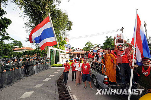 4月11日,在泰国帕塔亚,警察和反独裁民主联盟示威者在出席东盟系列峰会的外国代表团驻地外发生对峙。饶爱民 摄