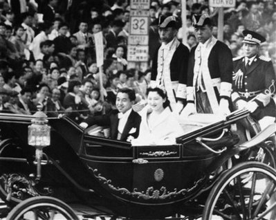 明仁天皇和皇后美智子结婚时的资料照片。
