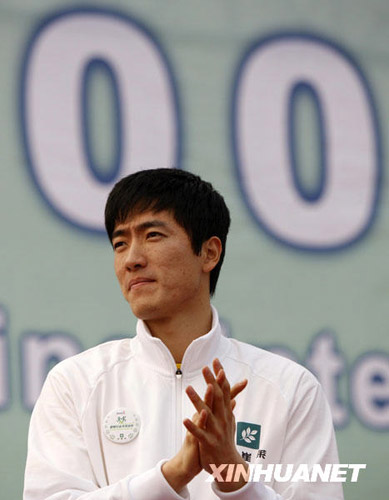 4月12日,刘翔在长跑节启动仪式上。当日,2009北京国际长跑节在天安门广场启动。王丽莉 摄