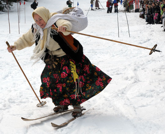 当地时间4月13日,波兰一年一度的复活节滑雪赛举行,参赛的当地群众身着19世纪的服饰参加比赛。